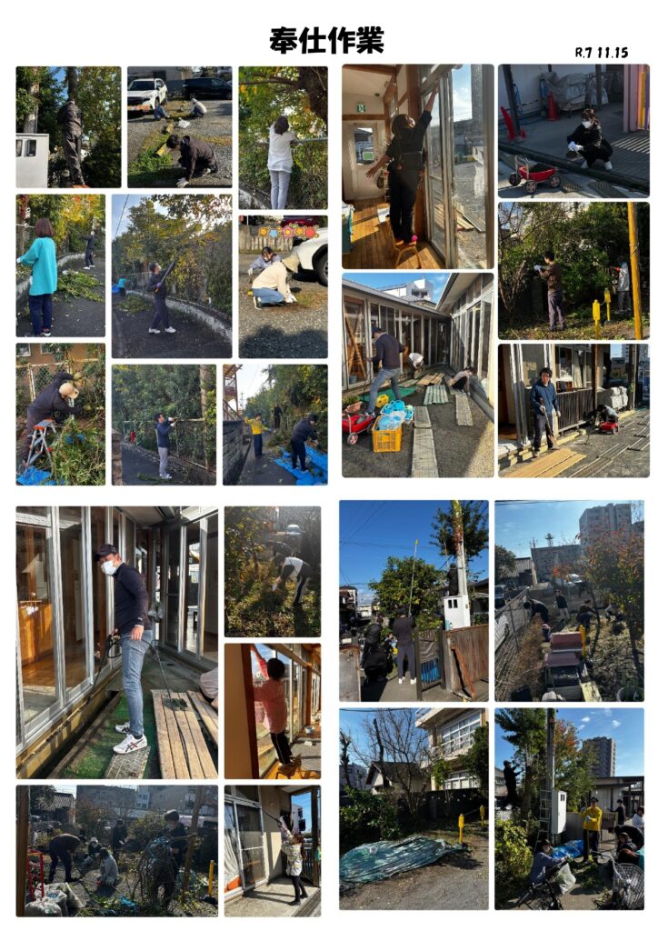 窓、側溝、枝の伐採、駐車場の草取りなどをしました。